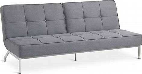 Modern armlös loungesoffa med grå tygklädsel. (198×95)